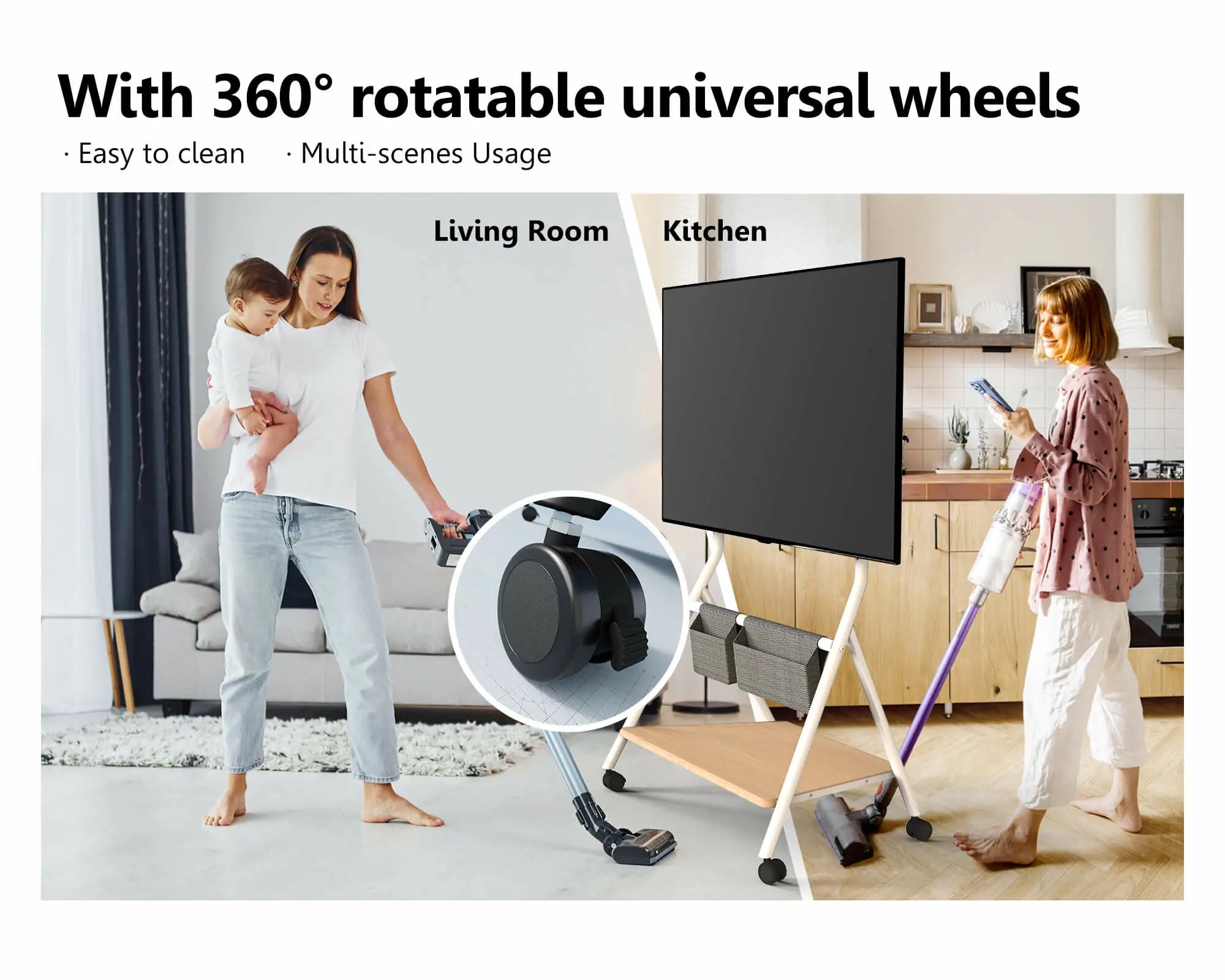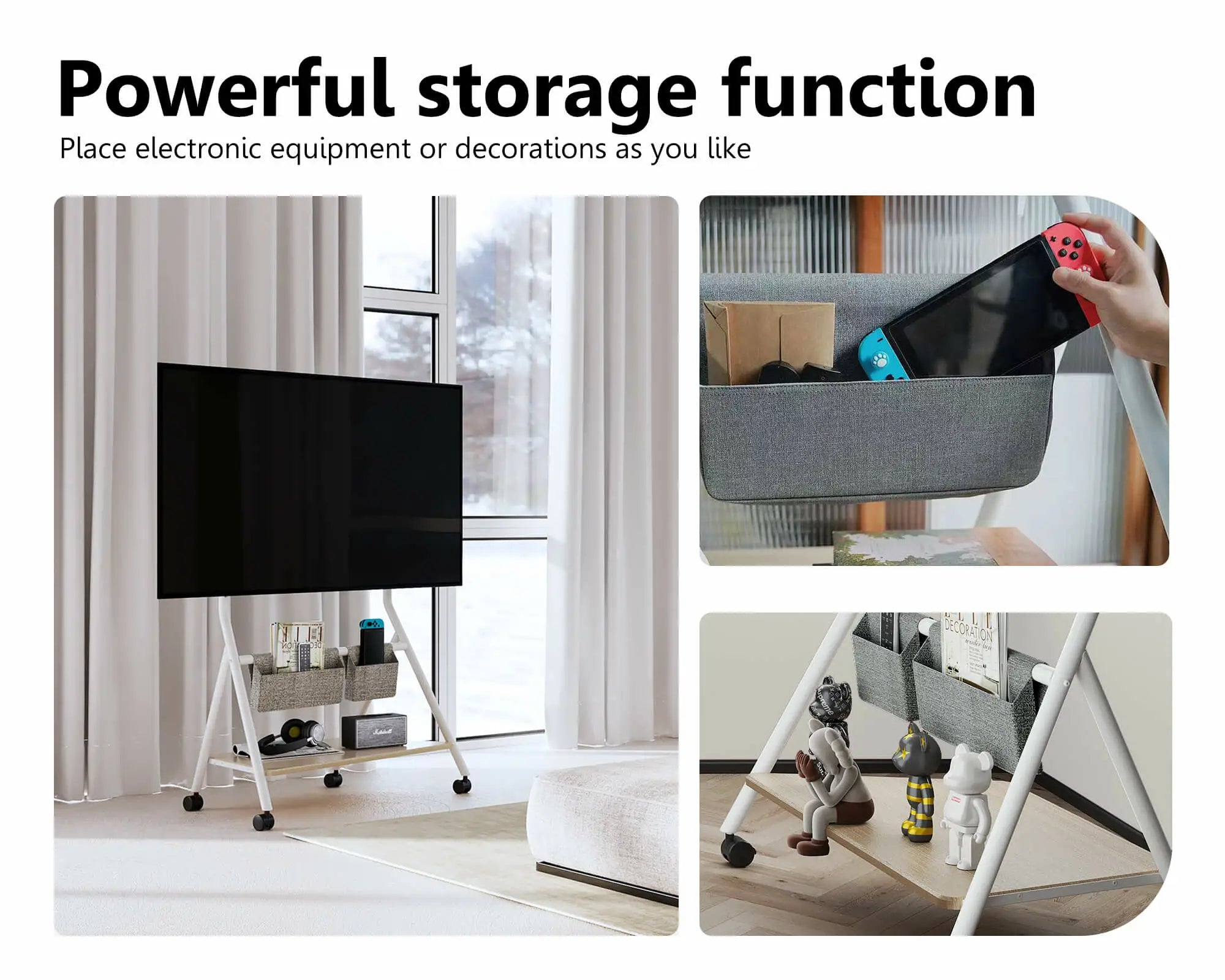 This TV stand features a portable design, allowing you to easily move and position your TV wherever you desire. Whether you want to rearrange your living space or need a stand for events or gatherings, this stand offers convenience and flexibility.