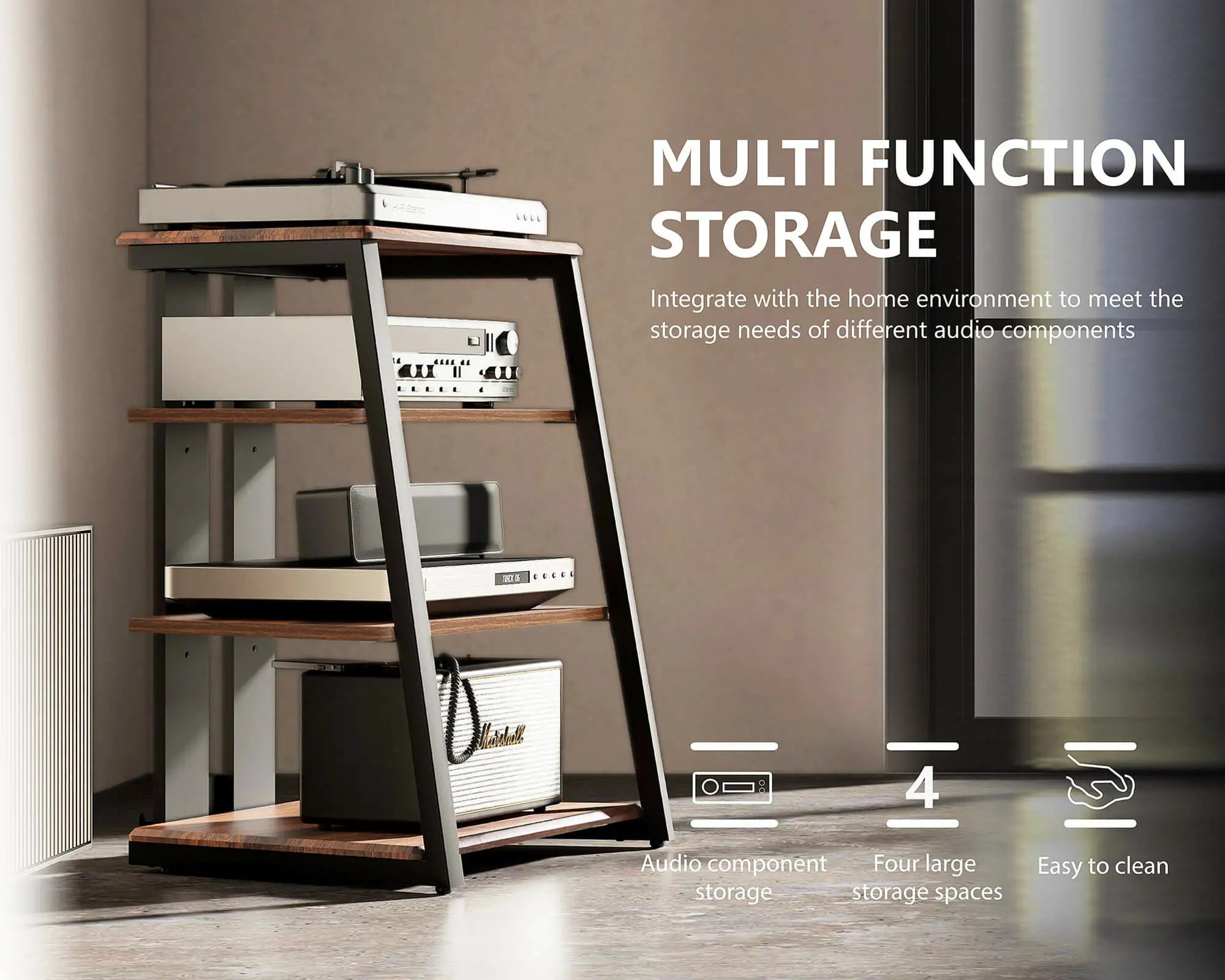 With multiple colors available, this audio stand also has a modern and streamlined appearance. Perfect for corners or remaining space, not only as a Multi-Functional Storage Solution in your home theater, but also as a Side Shelf in your office, home living room, bedroom.