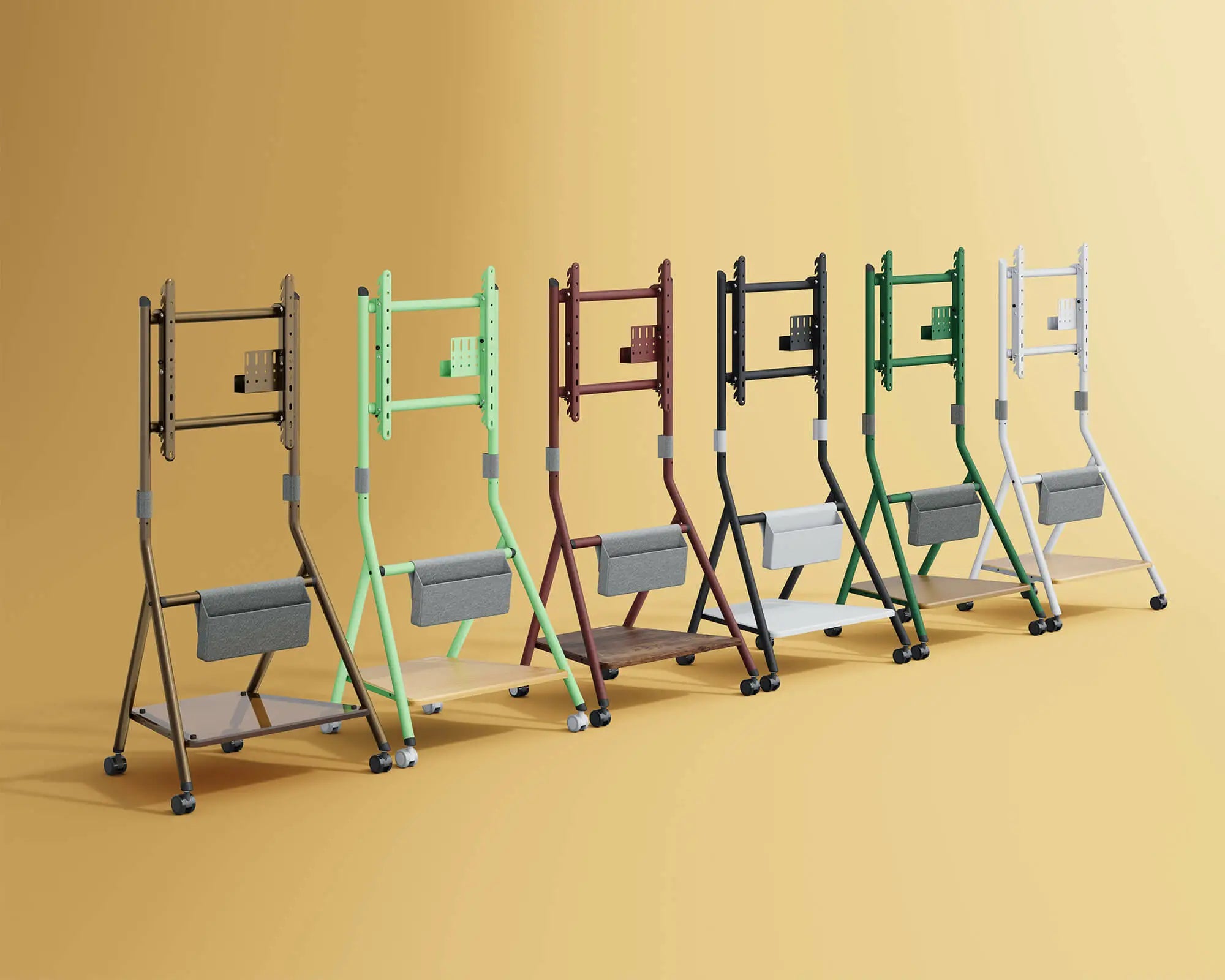Design of minimalist structure,anywhere mobile TV stand. The combination of metal tubes and wooden/glass shelves shows a lively and warm atmosphere, let you to feel the beauty and joy of daily life.