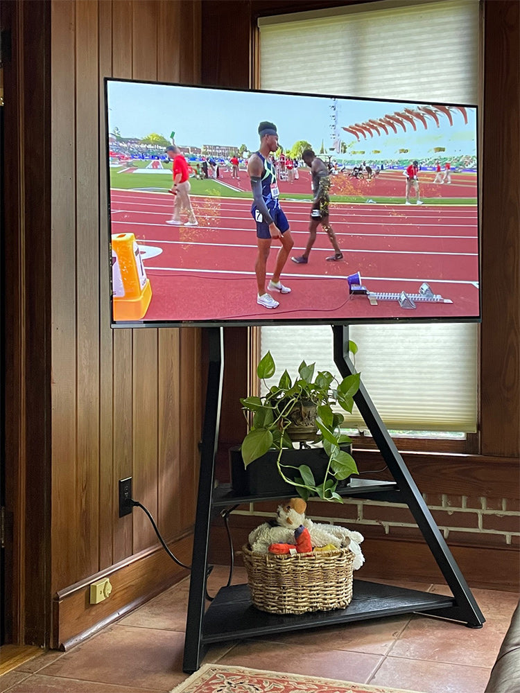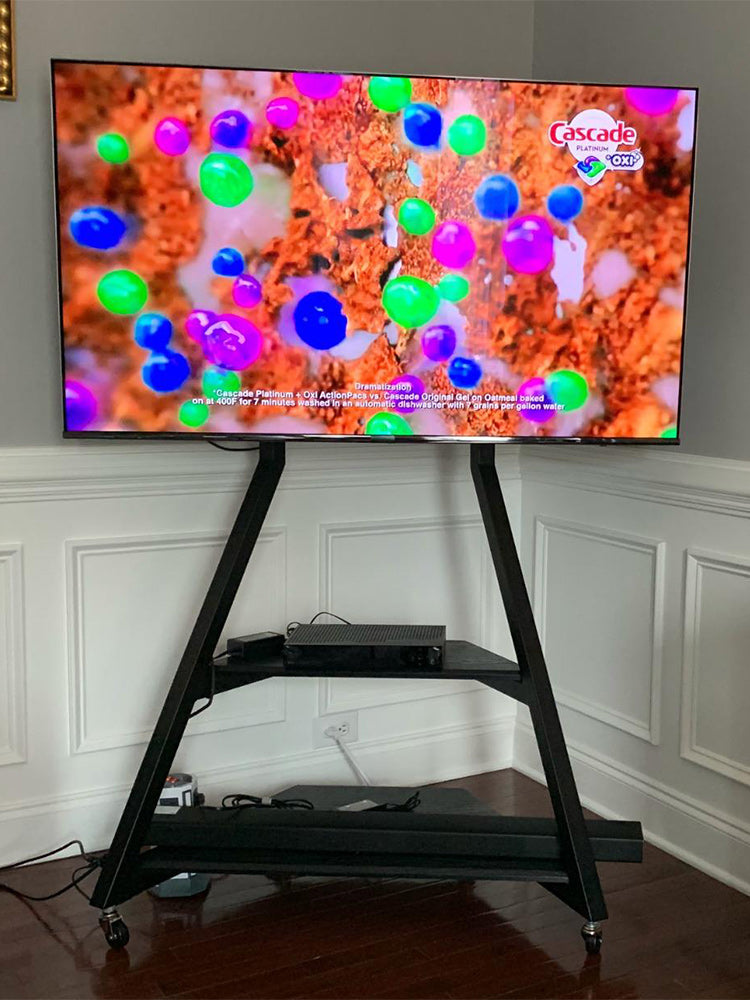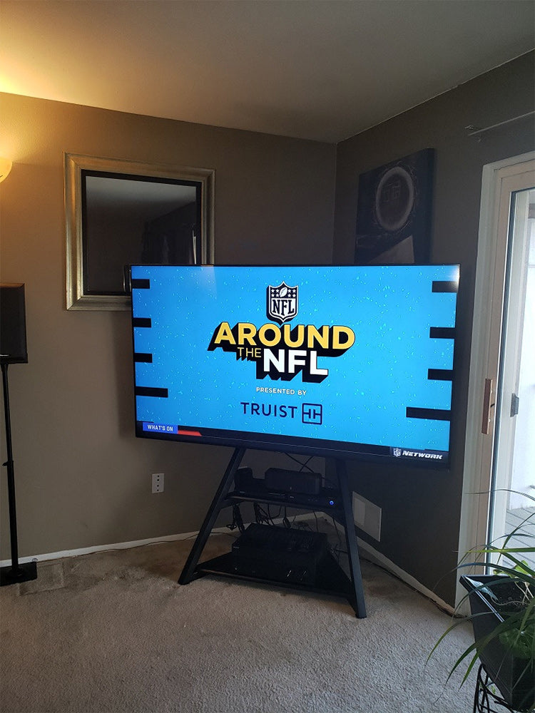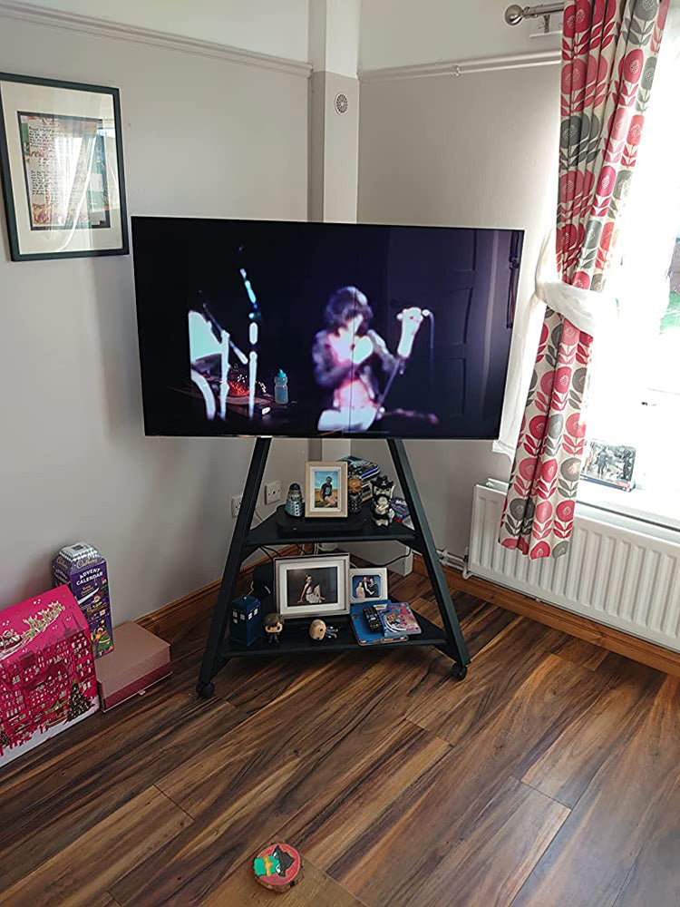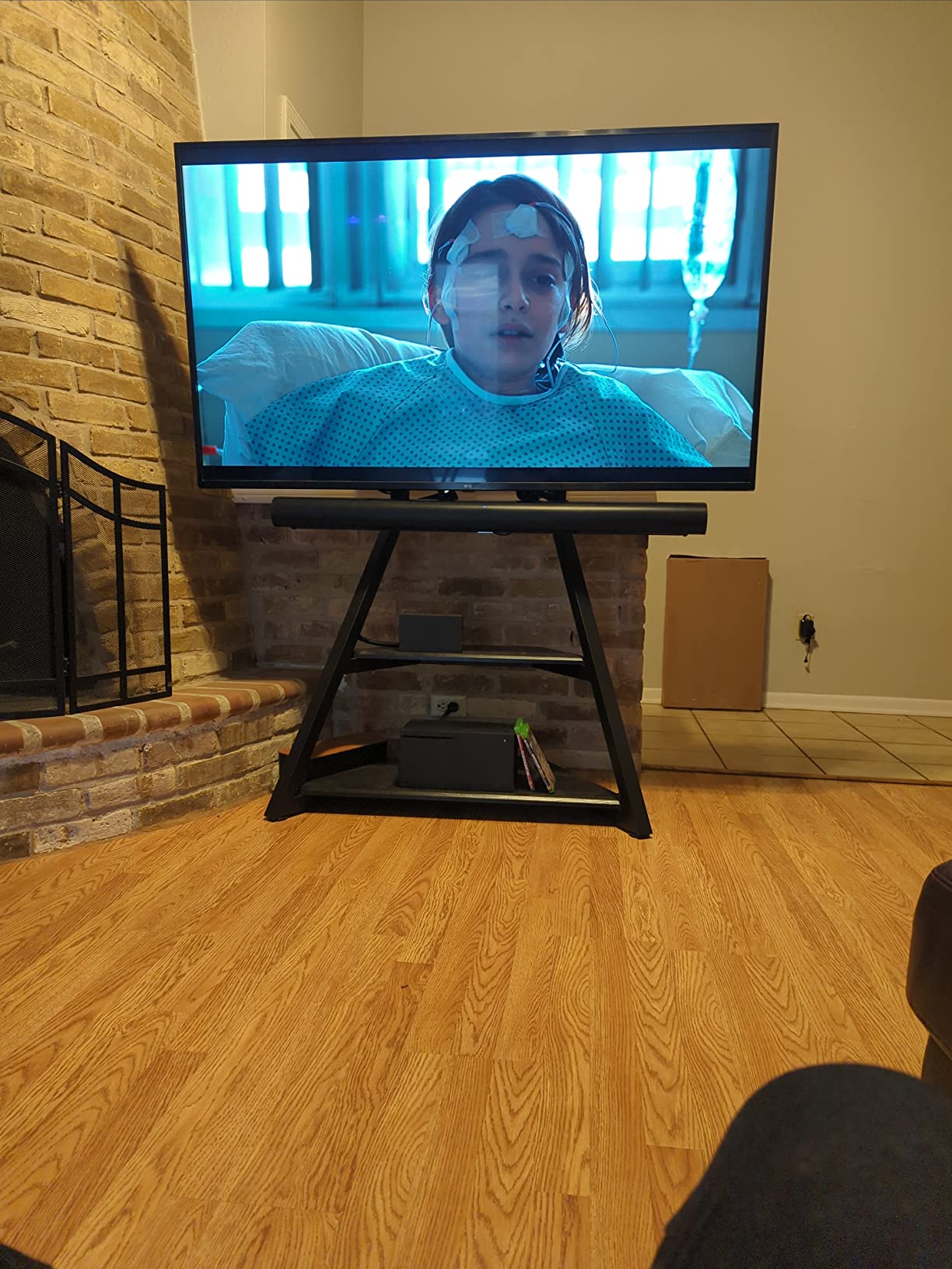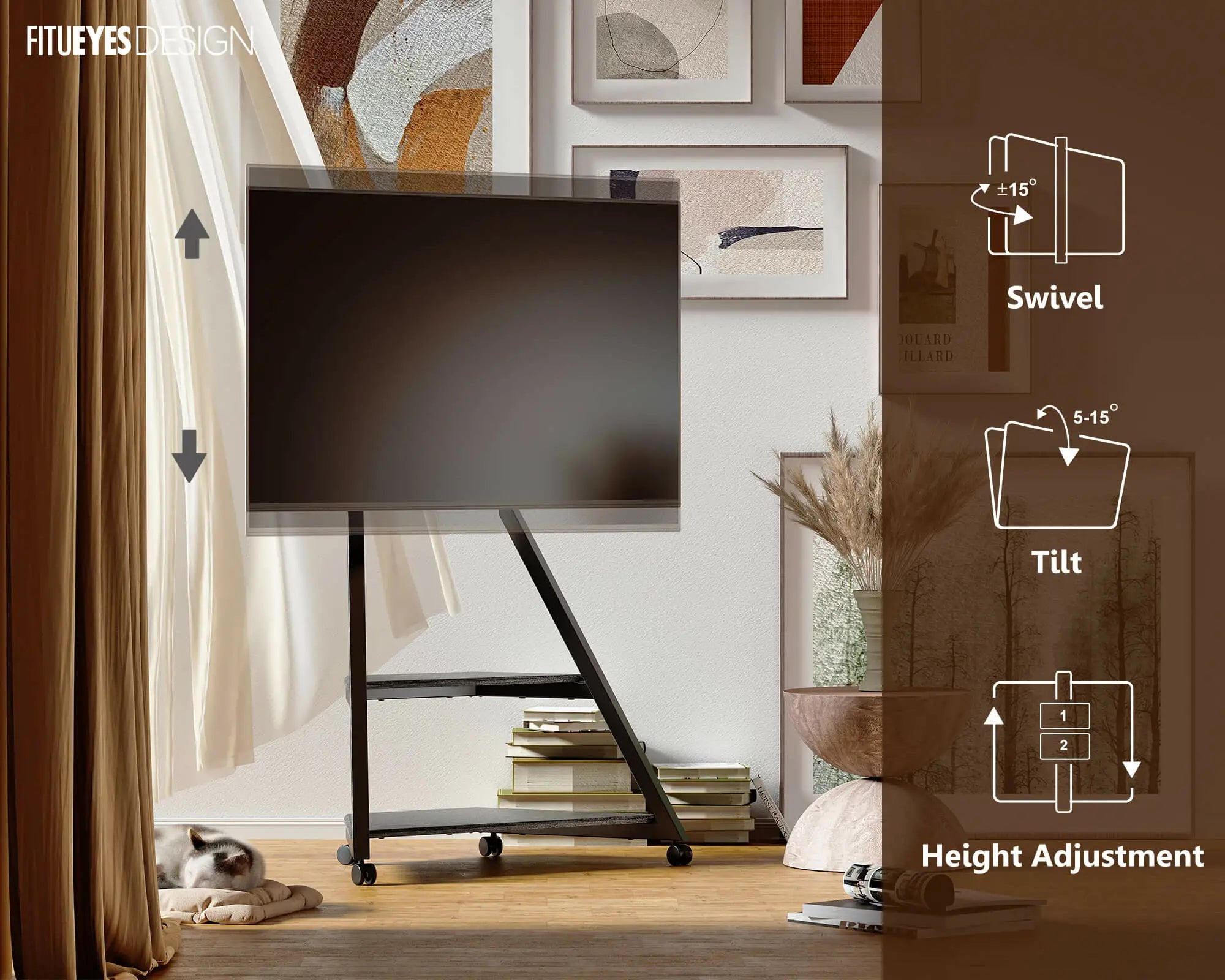 The height of this TV stand is Adjustable From 51.5"-56.5", empowering you to fine-tune your viewing angle. With support for 15° Left And Right Swivel, 5° Tilt Upwards, And 15° Tilt Downwards, this stand offers maximum flexibility. It's perfect for those watching TV from the floor or a low sofa. Adjust for optimal comfort, reduce neck strain, and immerse yourself in your favorite shows with ease.